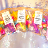 Three packs of Mini Bath Bombs, One Glow Wand, One Fishing Cube!