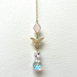 These suncatchers are made with crystal gemstones and Aurora Crystal beads. It’s not only the perfect rainbow maker and wall hanging, but it’s also infused with reiki and boosts chakra healing power.