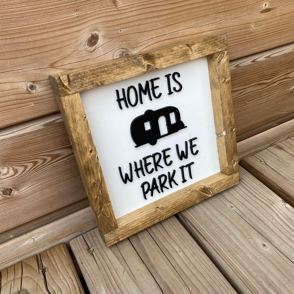 White background with black lettering. 3D lettering made from matte black acrylic and UV printed design. Includes a sawtooth hanger attatched to the back.