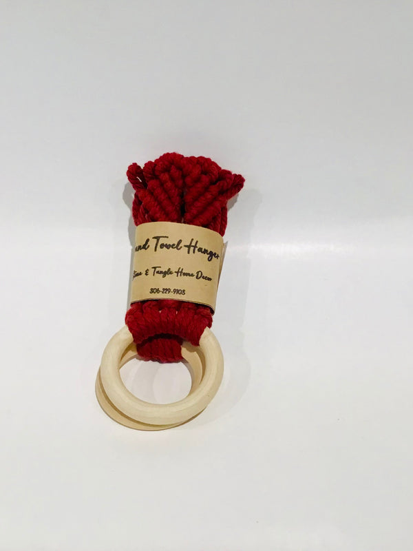 This Macrame Teatowel / Hand Towel Hanger will keep your towel at your fingertips and prevents it from falling down in a kitchen or bathroom. Handmade from cotton cording and a natural wooden ring this hanger makes a fantastic gift.