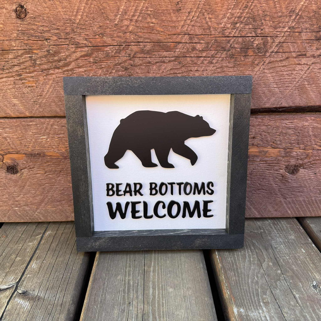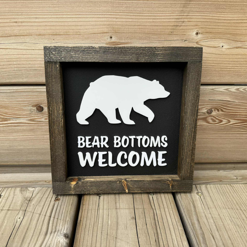 Welcome guests with the charming Bear Bottoms Welcome Sign! Measuring 8"w x 8"h, this sign features 3D letters that add a playful touch to any entryway. Plus, it comes with a convenient sawtooth hanger for easy installation. Perfect for any home or cabin, this sign is sure to make a warm and inviting statement.