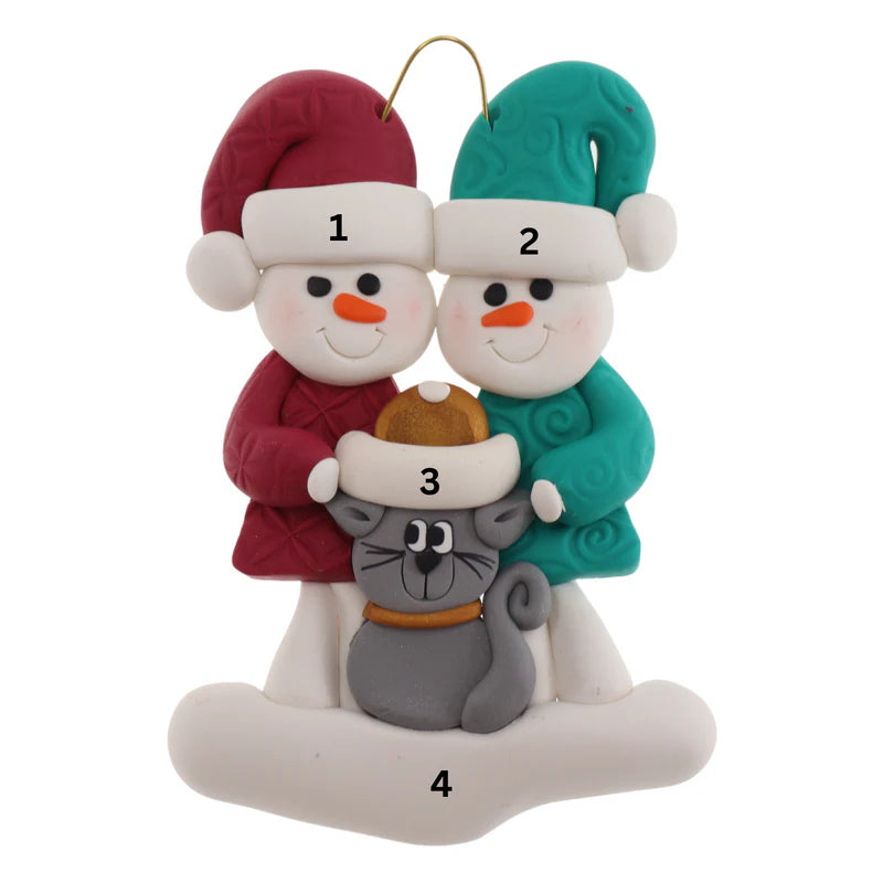 Let this adorable Snowman Couple and faithful cat ornament bring an extra touch of winter's gentle magic to your Christmas tree. Each year, as it hangs among the branches, it will serve as a warm reminder of your special bond and the peaceful, loving spirit that your cat adds to your holiday home.