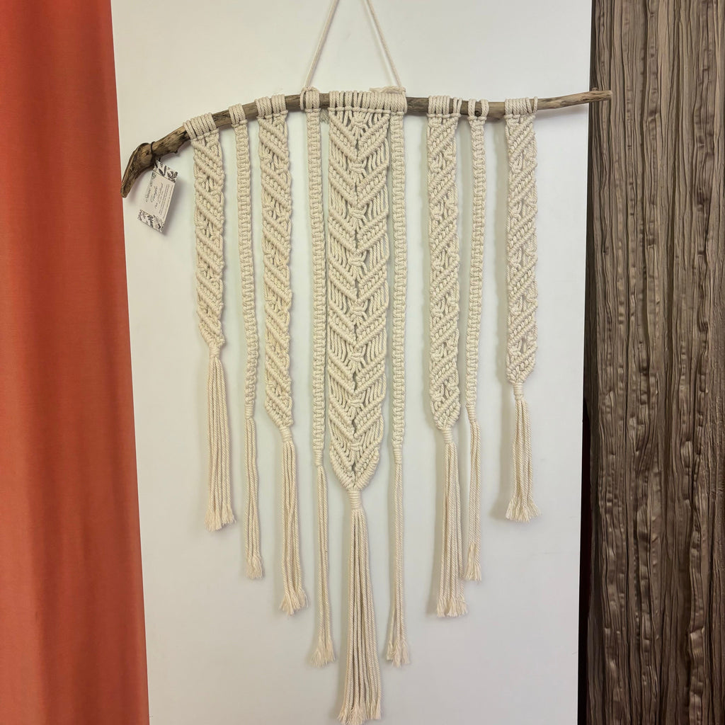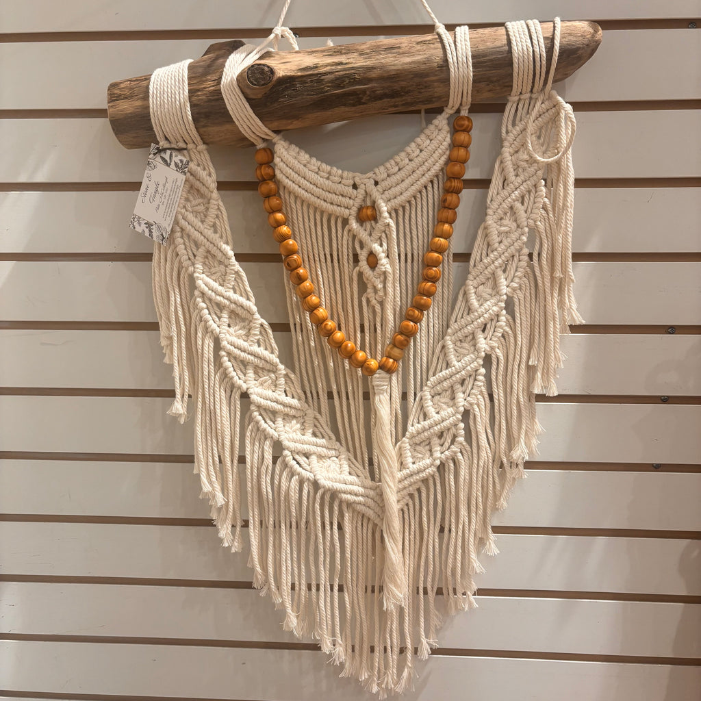 These gorgeous Macrame Wall Hangings are the perfect addition to elevate the aesthetic of any space! This stunning piece is meticulously handcrafted by Patti from Stone & Tangle with meticulous attention to detail that is sure to catch the eye. The neutral tones and natural eco-friendly materials create a soothing and rustic atmosphere. It is a versatile decor item that complements any interior style. Whether you're aiming to bring a touch of nature indoors or seeking the perfect statement piece for your bohemian-inspired decor, this piece is sure to instantly infuse your space with a sense of serenity and tranquility.