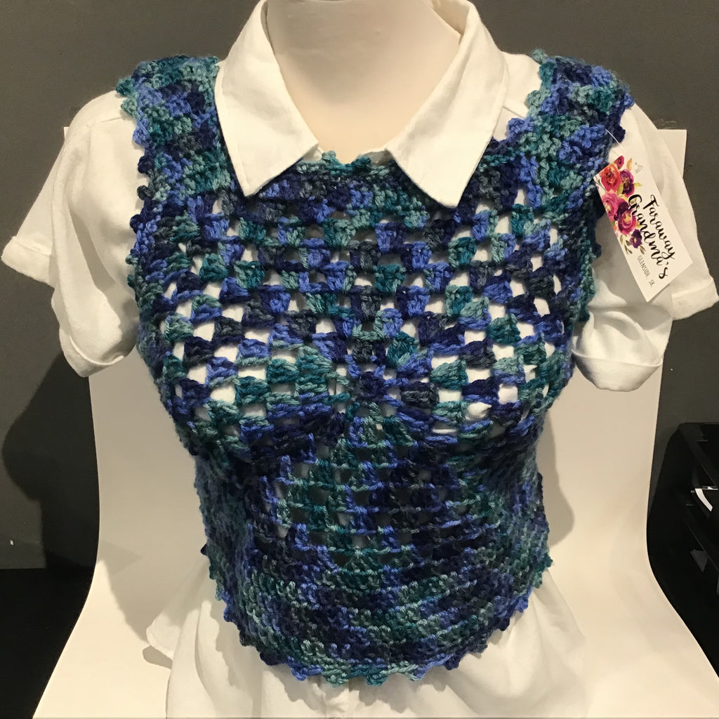 This charming crochet vest from Faraway Grandma adds a cozy, handmade touch to any outfit. Perfect for layering, its delicate stitchwork brings warmth and playful style to your wardrobe. Whether paired with a tee or dress, this vest effortlessly elevates your look with a dash of vintage-inspired charm.