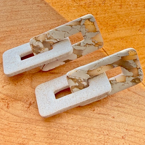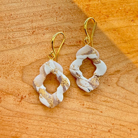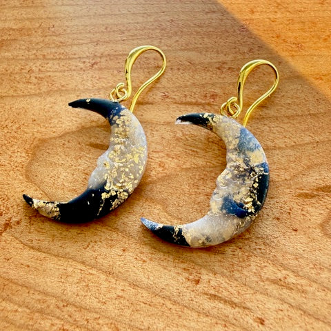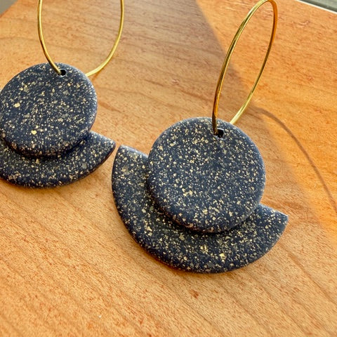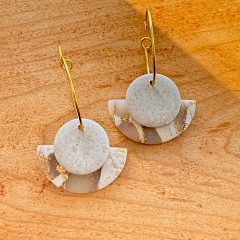 Handcrafted polymer clay earrings made with gold plated stainless steel hoops.