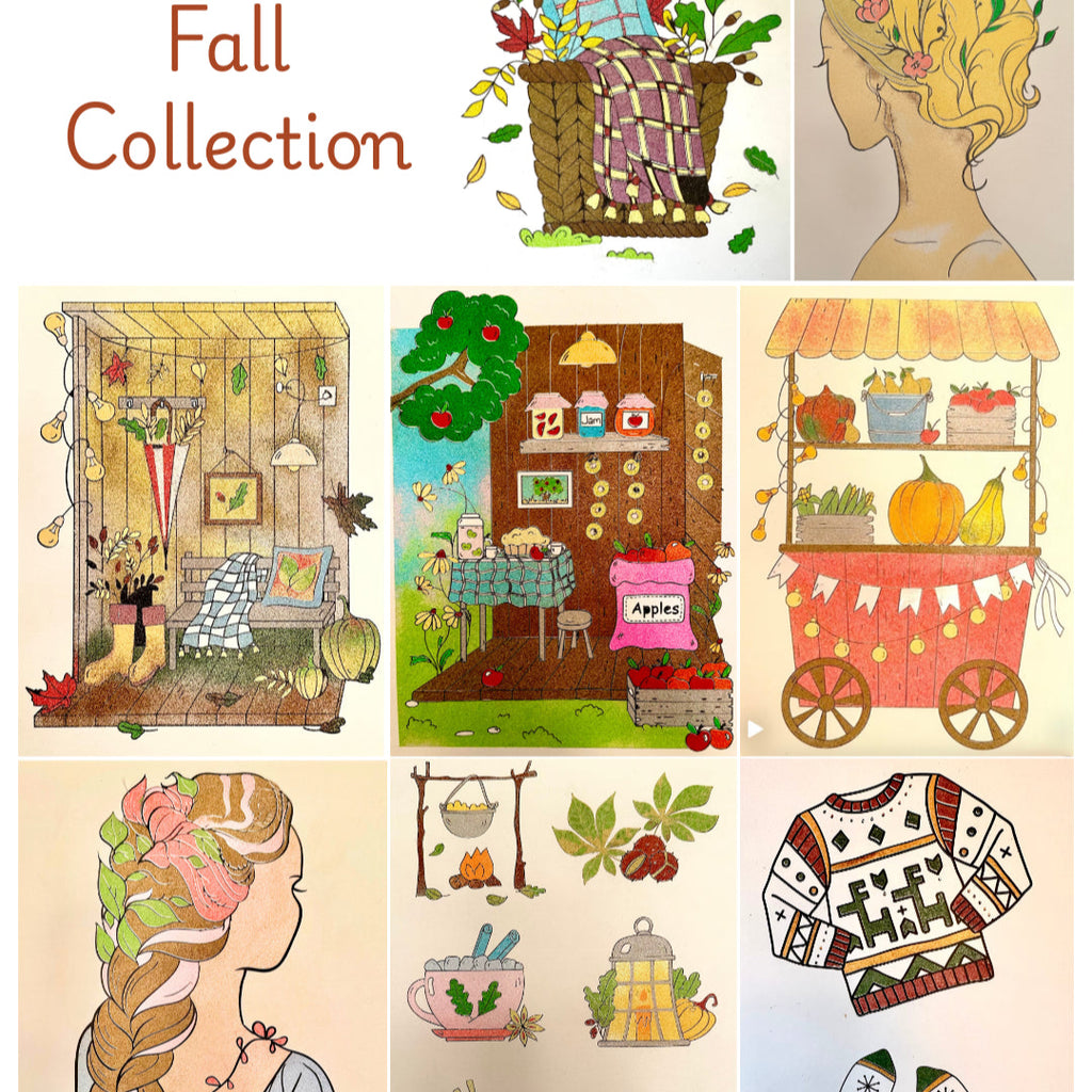 8 Coloring Sheets – featuring fall vibes and warm tones
